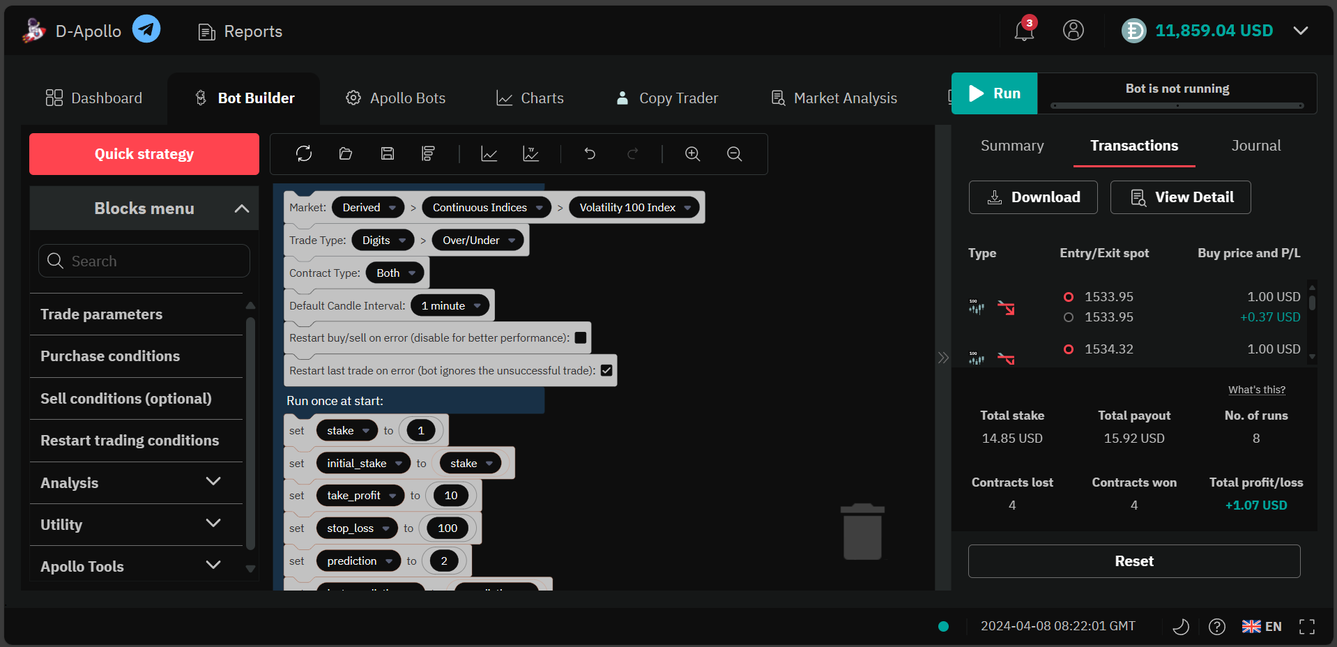D-Apollo revolutionizes trading with its free app, offering advanced analysis tools and cutting-edge binary/deriv trading bots. Empowering users to trade synthetic indices with ease, it's a game-changer in the financial world.